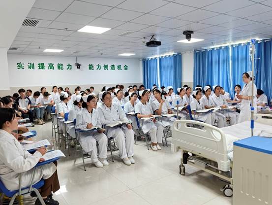期间,李艳受邀为该校师生带来了一堂精彩纷呈的《基础护理学》理论实践一体化任务驱动式翻转课堂的观摩课。李艳教授亲和自然,语言活泼,课堂把控能力极强,特别善于鼓励学生,她总是在最关键的时候,通过鼓励、引导和点拨,解决学生共同的疑难。整个课堂设计精巧内容满,环节紧凑效率高,学生真正变成了课堂的主人。课后,《基础护理学》教学团队围绕混合式教学的设计、组织、教授方法等方面与该校护理教师展开教学研讨,气氛热烈。