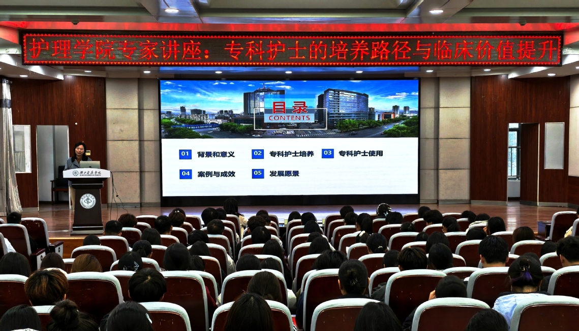 讲座中,李亚玲围绕主题,以“培养路径”为起点,逐步深入到“临床使用”的具体场景,并最终通过案例生动展现了专科护士带来的“巨大成效”与“发展前景”。一小时的分享内容丰富、案例鲜活,通过大量真实的临床案例与身边榜样的事迹,将专科护士的职业价值与广阔前景娓娓道来,拓宽了同学们对护理专业的认知视野。