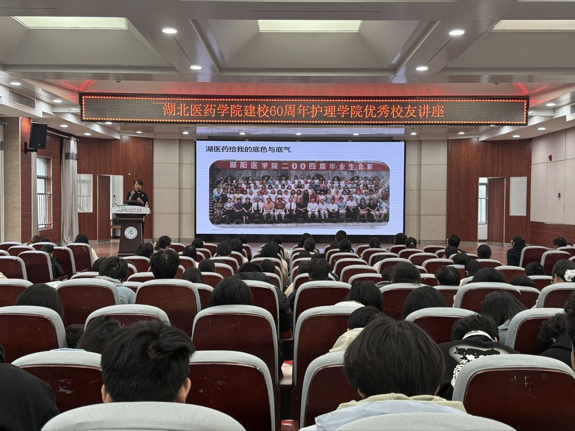 贺海霞校友则围绕“‘学护并进’到‘罐里灸间’的热爱与求索”展开分享,通过展示专利成果、讲解药酒与包扎等专业技术,体现了她在中医护理领域的深耕与创新。她鼓励同学们保持专业热情,明确职业目标,实现个人价值。