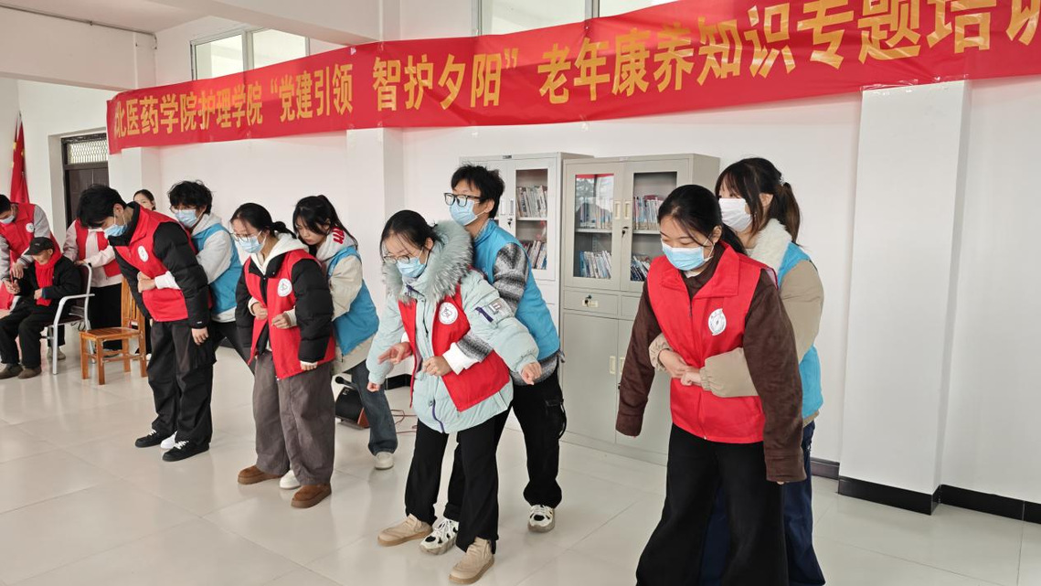 周丽急救志愿服务队发挥专业特长,通过讲解、演示与实操相结合的方式,向老人们传授海姆立克急救法和绷带包扎技巧,帮助他们掌握应对常见意外的自救技能。研究生党支部同学们则带领老人们学习“健脑”健身操。动作简单舒缓,兼顾肢体与脑力锻炼,志愿者们耐心指导,鼓励大家养成锻炼习惯,提升健康意识。