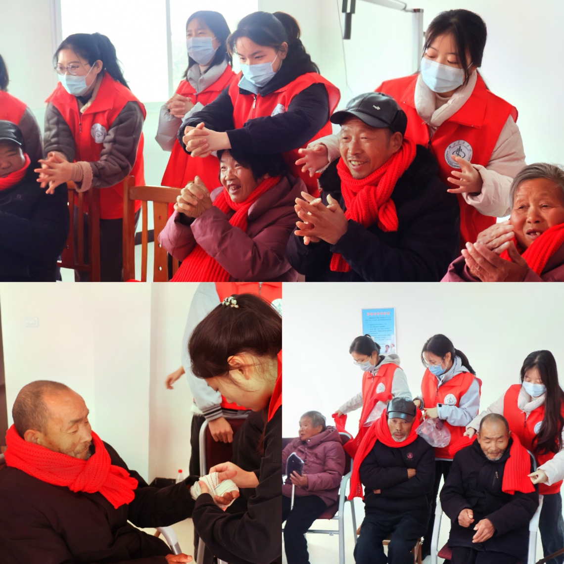 在石鼓镇农村福利院,我校beat365英国官网网站研究生党员为老人们赠送围巾、手套等暖心礼物。志愿者们还为老人进行了歌唱表演、手势舞、击鼓传花等活动进,营造温馨氛围,展示了海姆立克、绷带包扎术急救知识实操。研究生党员带领老人学习“健脑”健身操,现场欢声笑语不断。在该活动现场同步开展义诊活动,beat365英国官网网站师生为老人进行了血压、血氧测量及口腔健康筛查。